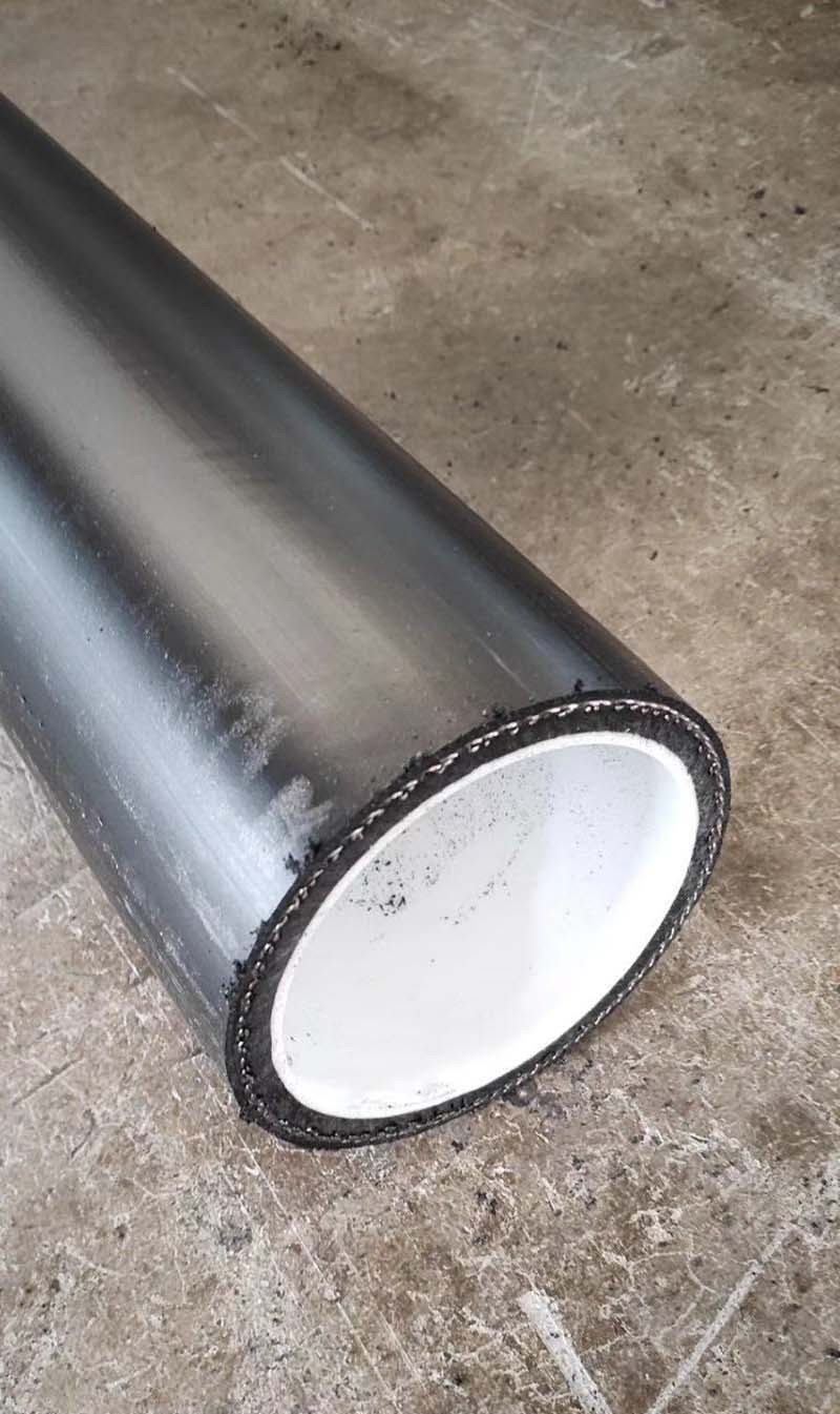 由于耐磨層的襯入,大大提高了管材在輸送漿體、固體介質(zhì)時的抗磨性,提高管材的使用壽命。其耐磨性能遠(yuǎn)優(yōu)于目前大家公認(rèn)的UHMW PE耐磨塑料管道,其耐砂漿磨損率低十多倍,可以廣泛用于輸送對管道磨損嚴(yán)重并有酸、堿、鹽腐蝕的固體、液固、氣粉、漿體等場所。